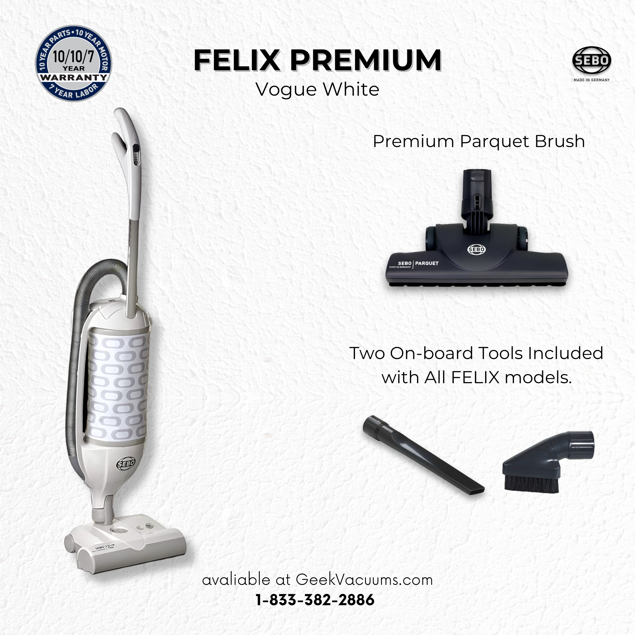 The Sebo Felix is equipped with a robust motor system and several useful features that ensure an efficient cleaning experience. Below are the specifications for this exceptional machine: