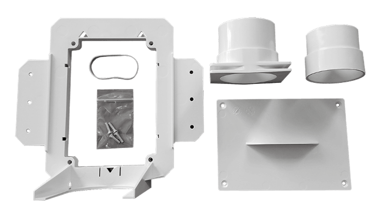 The first piece you need to mount when installing Hide A Hose central vacuum in your home or business. This is mounted in the wall as a backer for the valve in later parts of the install, the first run of pipe is then glued to this piece. See instructions.