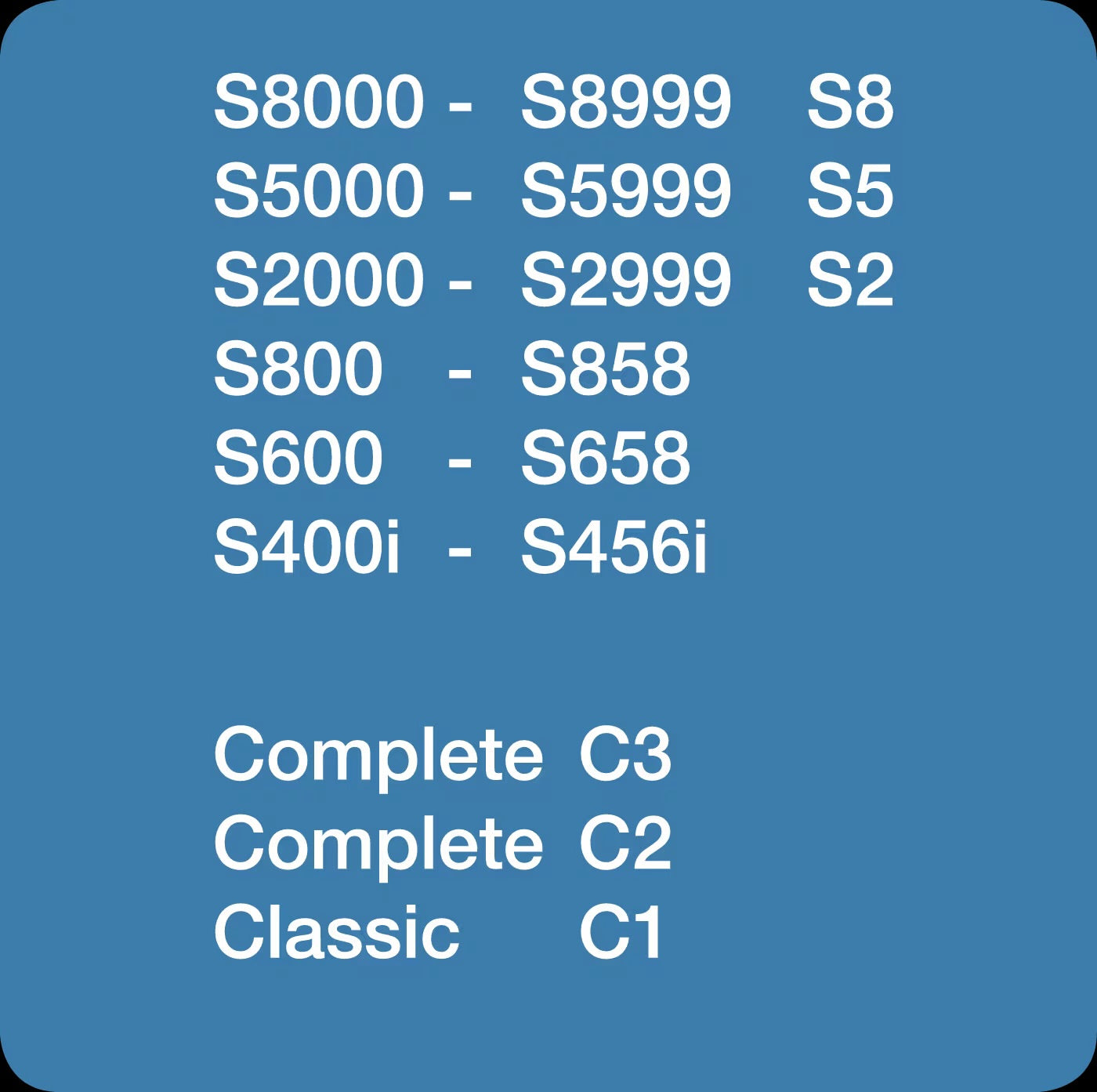 For Complete C2, Complete C3, Classic C1, S8, S5, S2