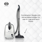 - Straight Suction with Kombi Nozzle: The E1 Kombi features a combination nozzle with retractable bristles, ideal for rugs and hard floors.