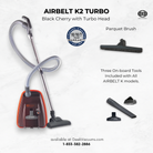 TUG-AND-RETRACT CORD REWINDER: The K models offer a “tug-and-retract” cord rewinder instead of a push-button rewinder, which is the type offered on the AIRBELT D and E models.