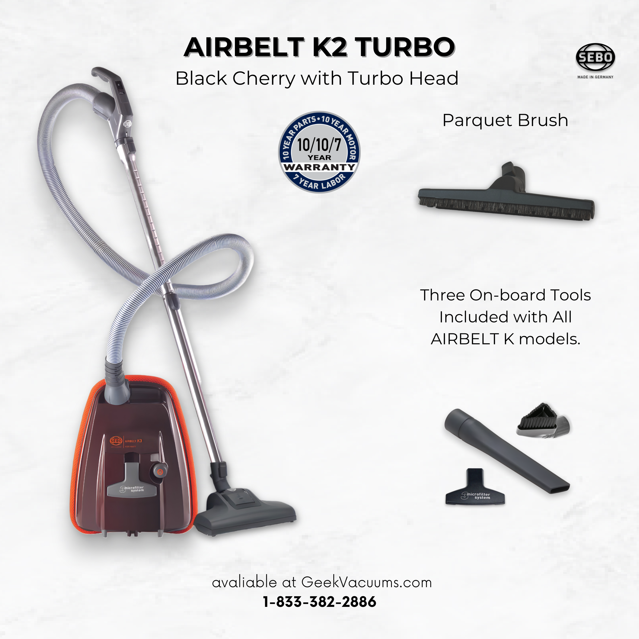 MID-SIZE CANISTER VACUUM WITH LARGE FILTER BAG: The K models are considered mid-size canister vacuums, which means they are smaller, more compact machines. They have a .8-gallon filter bag and weigh about four pounds less than SEBO’s D-model canisters.