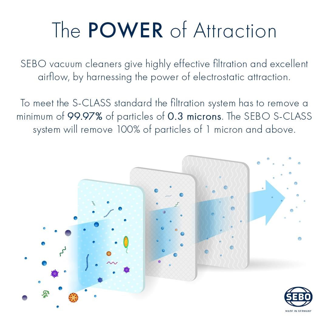 THREE-STEP FILTRATION: They feature an S-class pre-motor microfilter, a three-layer AeraPure™ bag, an exhaust filter, and a tightly sealed casing, which prevents dirty air from escaping through its seams. An optional HEPA pre-motor microfilter is available.